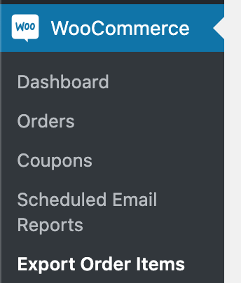 Select "WooCommerce" > "Export Order Items" from the left sidebar menu in Admin Dashboard.