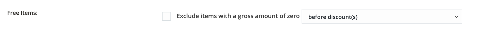 - Free Items:f you enable the "Exclude items with a gross amount of zero" option, line items with a gross amount of zero before or after discounts (user-selectable) will be excluded from the export.